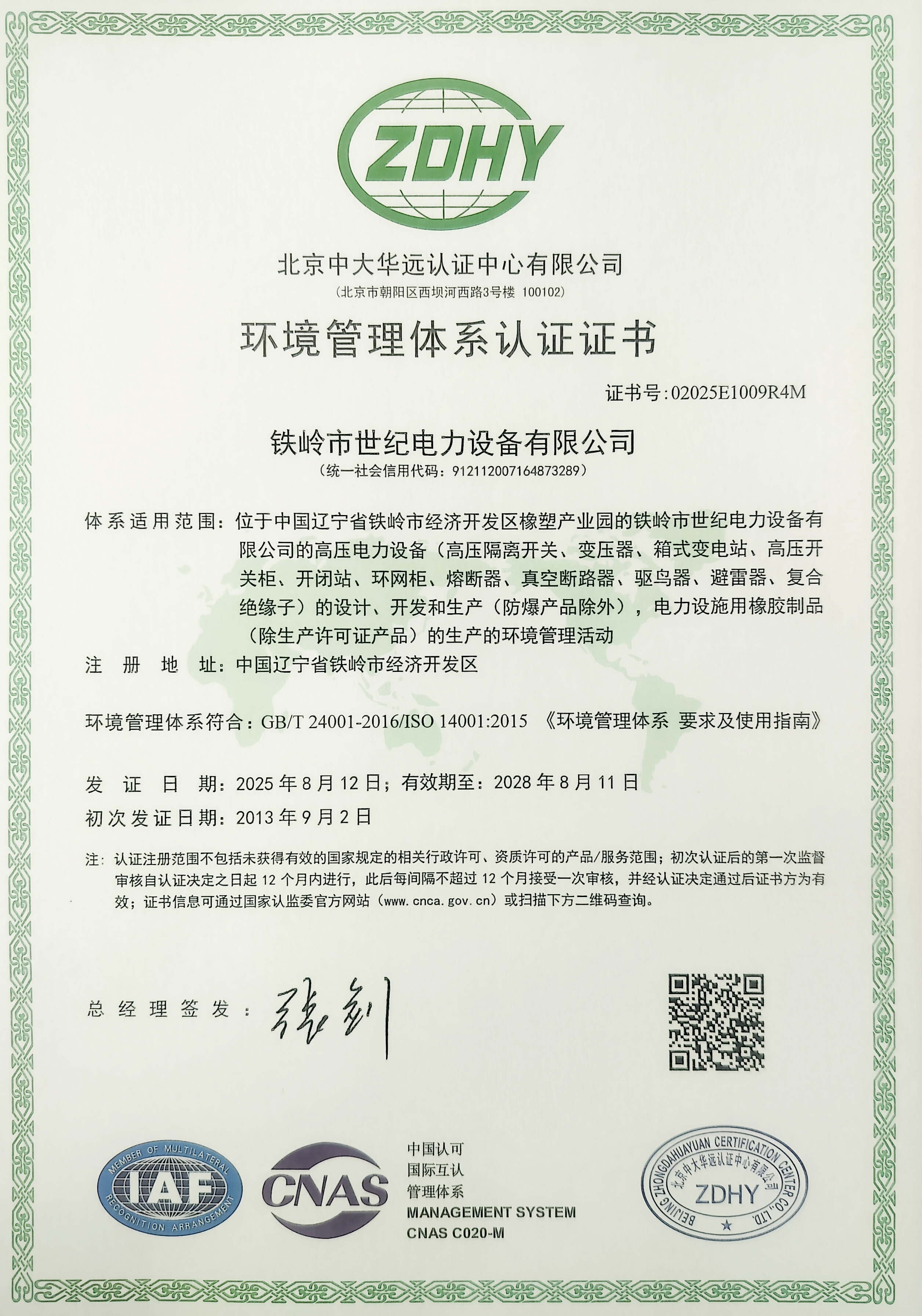 鐵嶺市世紀電力設備有限公司是集科研開發(fā)、生產(chǎn)制造、用戶服務于一體的國家高新技術企業(yè),始建于1999年,位于鐵嶺經(jīng)濟開發(fā)區(qū),占地面積5萬余平方米,建筑面積2萬余平方米。主要從事國家電網(wǎng)配套戶外高低壓隔離開關、電力電纜、變壓器成套裝置、高低壓開關柜、箱式變電站、絕緣子等產(chǎn)品的研發(fā)、生產(chǎn)和銷售。公司現(xiàn)有國家發(fā)明專利6項、實用新型專利9項,公司通過了ISO9001國際質(zhì)量管理體系認證、ISO14001環(huán)境管理體系認證和ISO 45001職業(yè)健康安全體系認證。